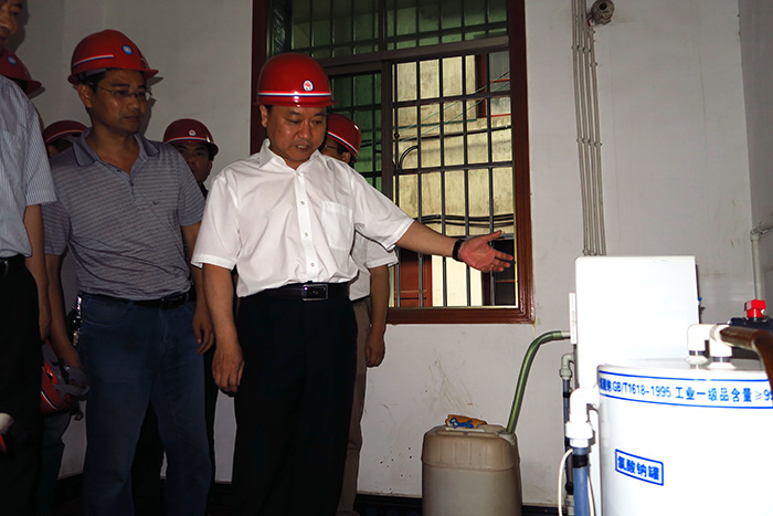李國英副部長在仔細察看水處理工藝流程
