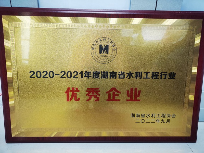 安沅公司榮獲2020—2021年度湖南省水利工程行業(yè)優(yōu)秀企業(yè)稱號。